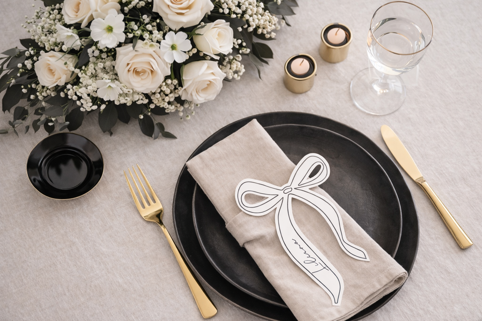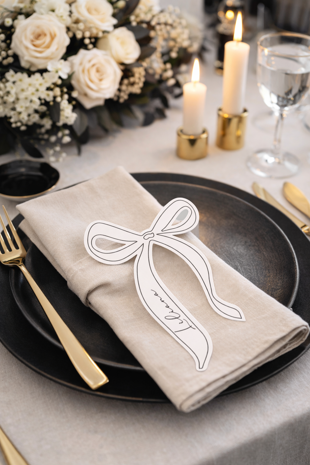 Winietka w kształcie kokardki to lekki, dekoracyjny akcent, który dodaje stołowi elegancji i subtelnego uroku.