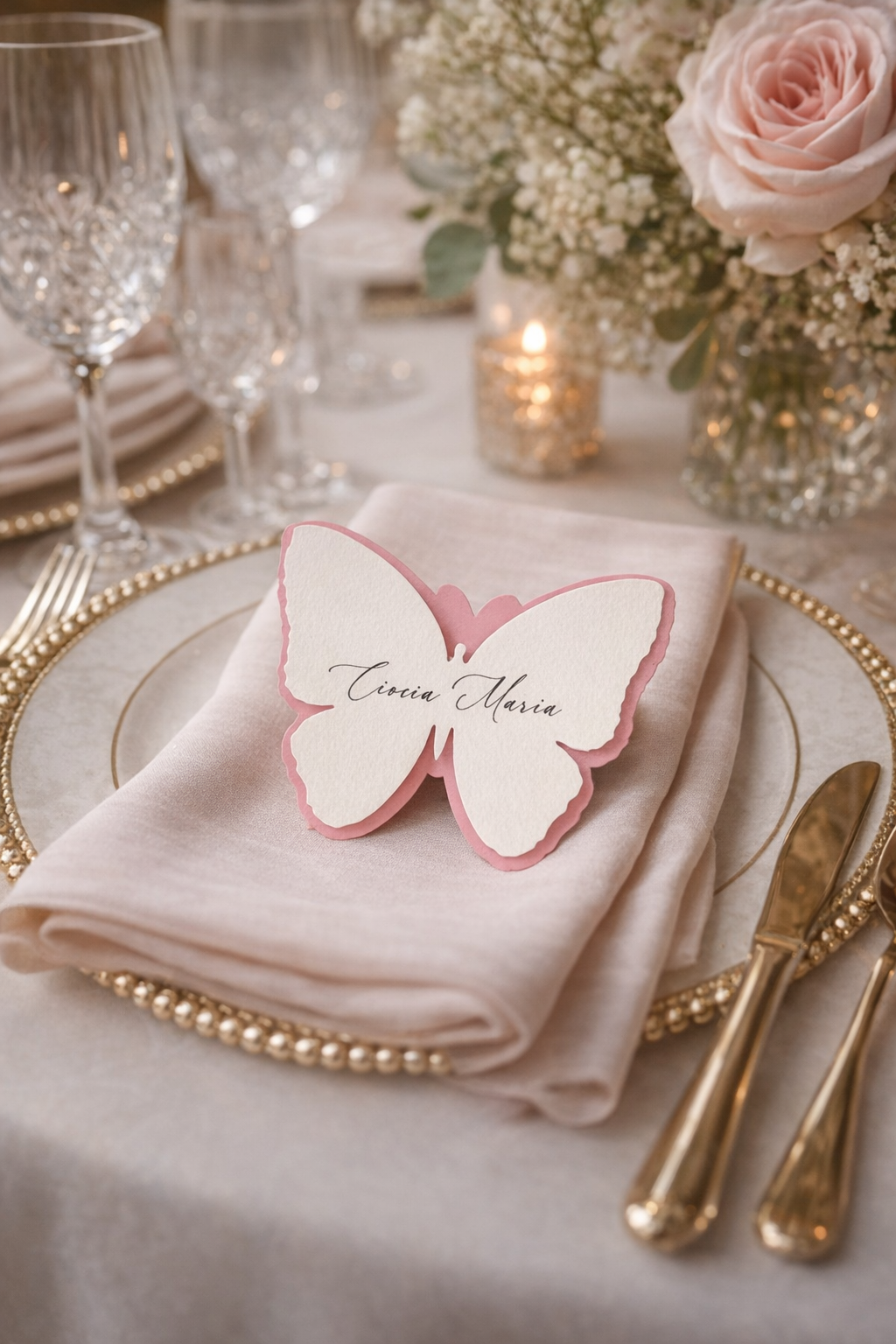 Winietki motylki – drobny detal, który dopełnia całość dekoracji stołu.